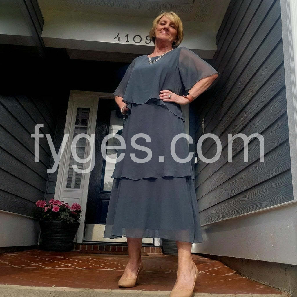 Chic Plain Round Neck Half Sleeve Midi Dress
