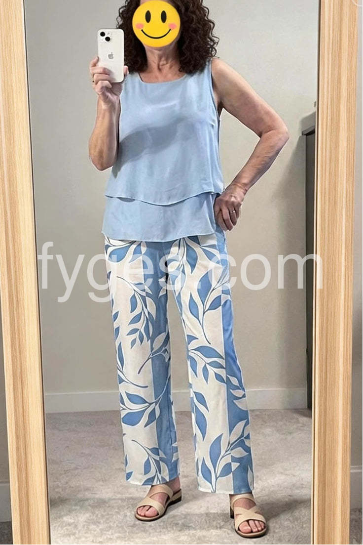 Yes!It runs true to the garment size chart please choose your size based on your measurements.Get your summer style on point with this Blue Plant Print Square Neck Two Piece Set. Made with a stunning blue plant print design, this set features a square neck and is perfect for any warm day. Stay trendy and comfortable all day long with this must-have set.