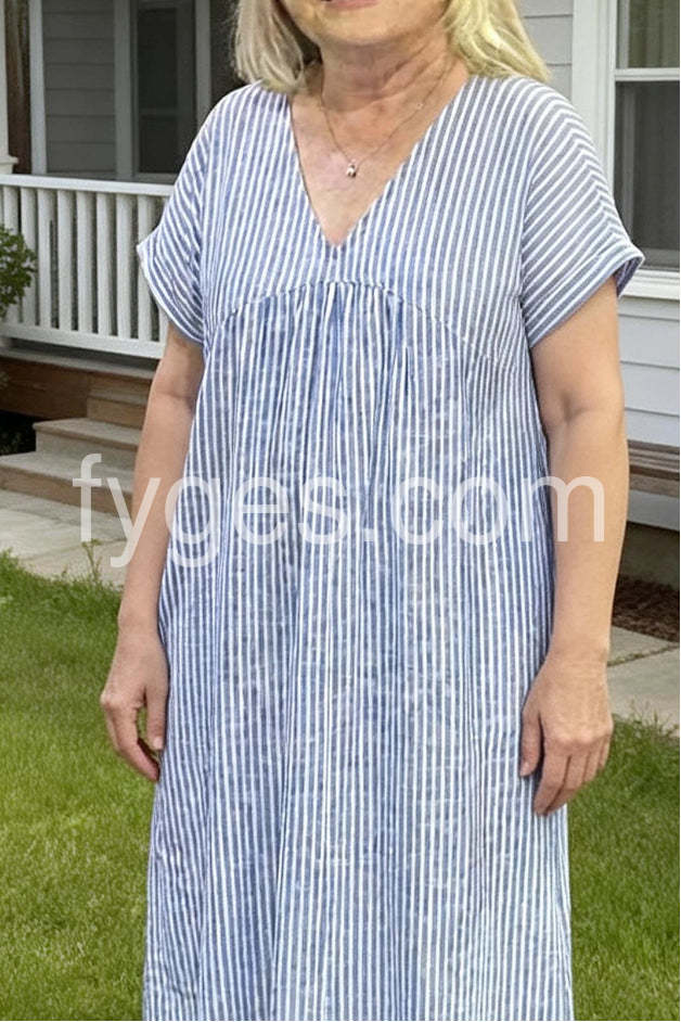 Yes!It runs true to the garment size chart please choose your size based on your measurements.This Youthful Striped Print V-Neck Midi Dress is designed for the modern fashion-forward woman. Made with a flattering V-neckline and eye-catching striped print, this dress is versatile and perfect for any occasion. Its midi length adds a touch of elegance, while the youthful design adds a playful touch. Elevate your wardrobe with this must-have dress.