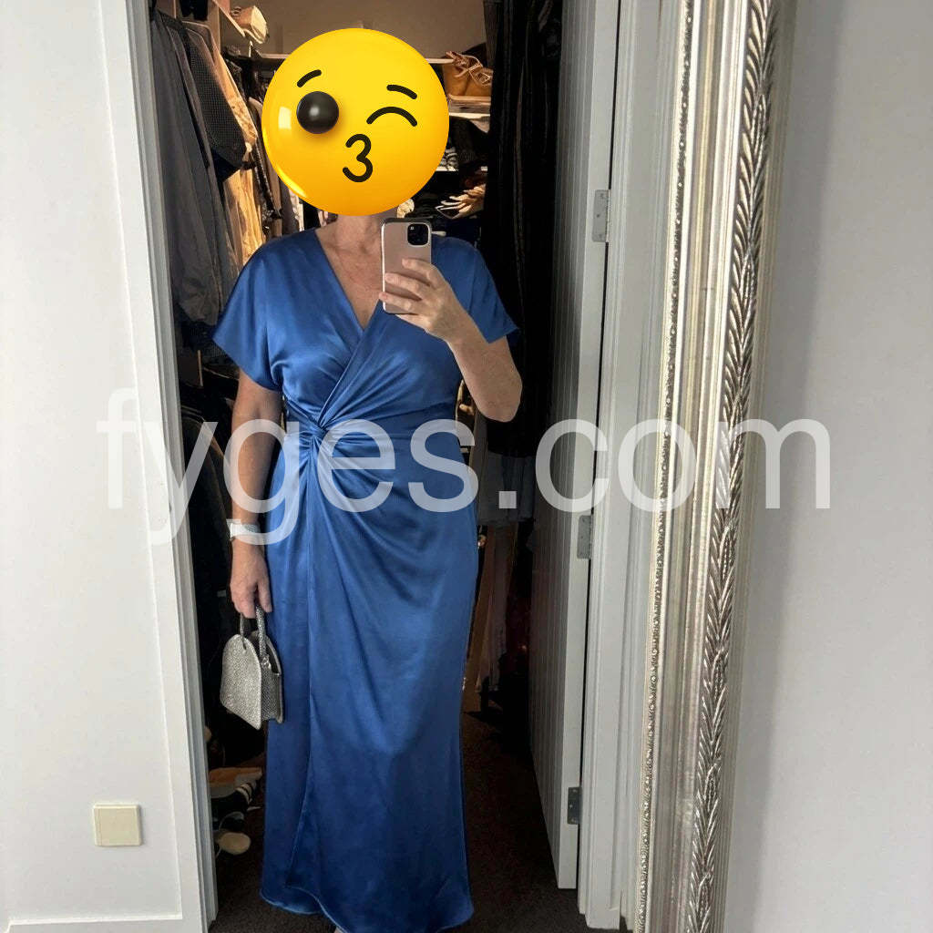 Yes!It runs true to the garment size chart please choose your size based on your measurements.Introducing our Unique V-Neck Plain Short Sleeve Midi Dress! This dress combines style and comfort with its V-neck design and short sleeves, perfect for any occasion. Made with high-quality material, it's sure to make you stand out in a crowd. Upgrade your wardrobe with this elegant and versatile piece.