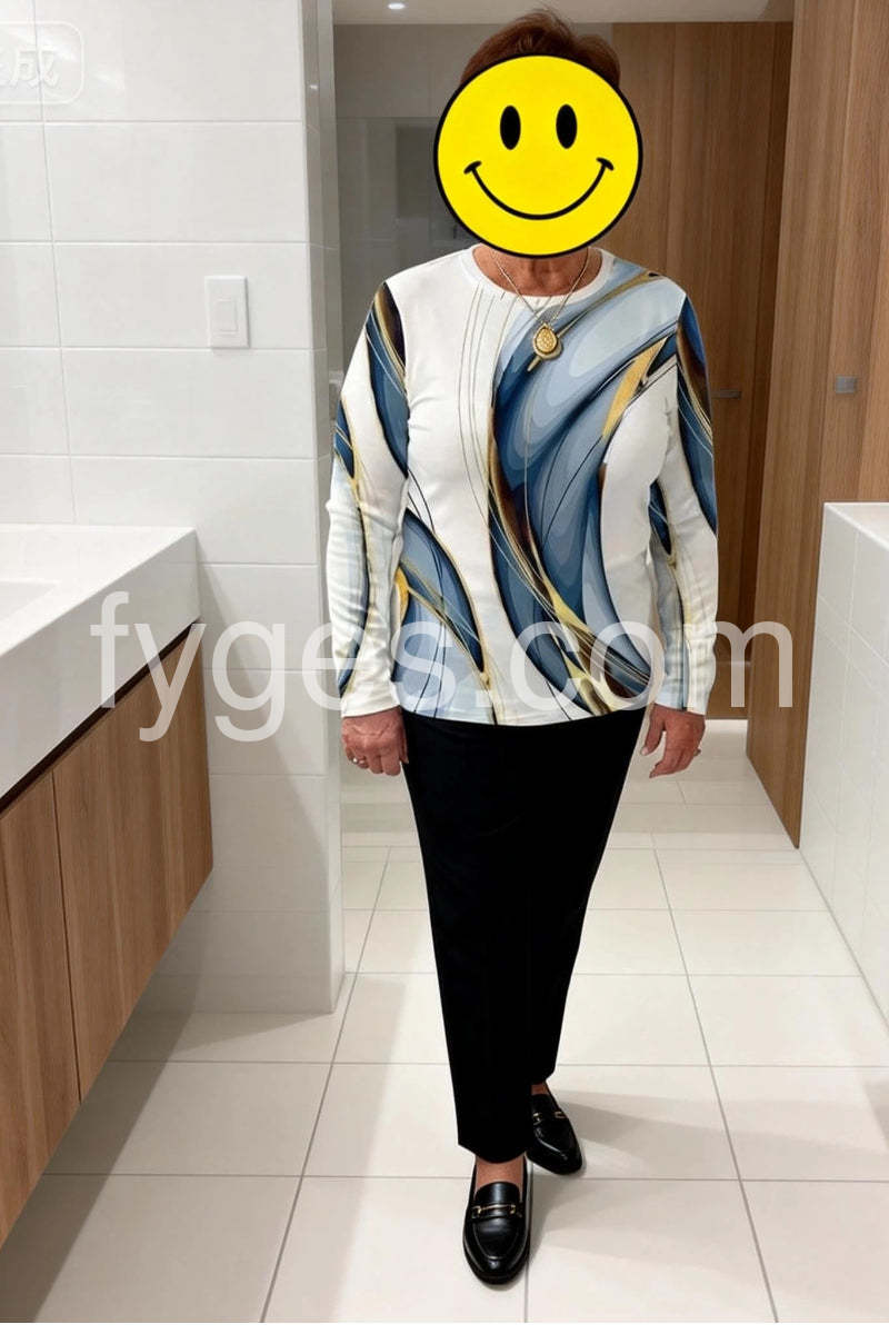 Yes!It runs true to the garment size chart please choose your size based on your measurements.Elevate your wardrobe with this Stunning Geometric Print Round Neck Long Sleeve Top. Designed with a modern geometric pattern, it offers a sophisticated look suitable for both professional and casual settings. The round neck and long sleeves provide comfortable coverage, making it ideal for layering or wearing alone. Crafted to combine style and practicality, this top enhances your outfit with a contemporary edge while ensuring all-day comfort.