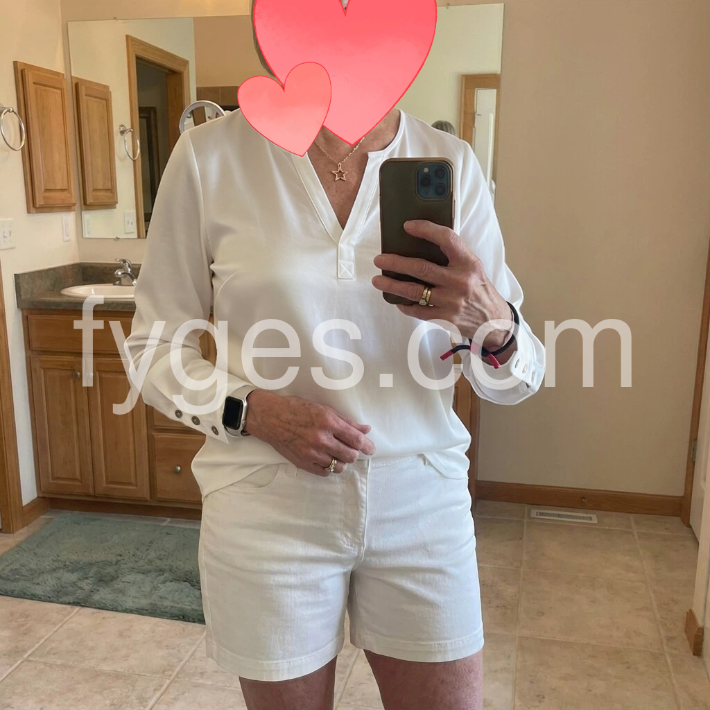 Get back to basics with this simple long sleeve button front top, ideal for layering with a camisole or a jacket and worn with your favorite pair of leggings, a skirt, or jeans. The waist-length fit and lightweight feel will take your day look into the night with effortless style. The round collar with v-neck pairs well with necklaces. Machine wash normal with light colors or hand wash. May be hung up to dry or lay flat. Light ironing if needed.